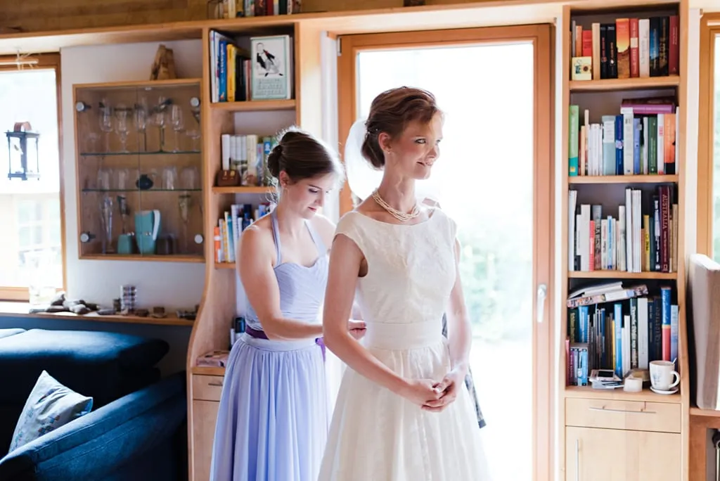 Nach ein paar interessanten, aber im Endeffekt doch erfolglosen Besuchen in Studios für Brautmode, habe ich mich mit meiner Schwester und meiner Mutter auf den Weg nach Hannover in das Atelier von Rike Winterberg von elementar Modedesign gemacht. Sie konnte meinen Wunsch nach natürlichen Stoffen verstehen und hat mich tatsächlich auch für echte Seide begeistert. Aus verschiedenen Schnitten und Stoffen haben wir mein Kleid entwickelt, in dem ich mich von der ersten Anprobe an einfach nur wohl gefühlt habe. Mein Kleid war schlicht und elegant und mit ein bisschen Schleppe. Inzwischen habe ich es einfärben und kürzen lassen und bin ein zweites Mal ganz begeistert.