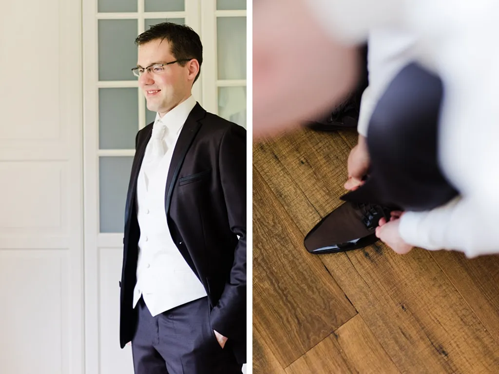 Bei der Suche nach einem Anzug haben unsere Trauzeuginnen meinen Mann tatkräftig unterstützt. Er hat einen sehr guten Geschmack und wusste eigentlich recht gut, was er suchte. Im Endeffekt war es doch ein bisschen anders als geplant, er wurde bei TailormadeSuits in Köln fündig und hat sich mit Accessoires von hochzeitsrausch ausgestattet.