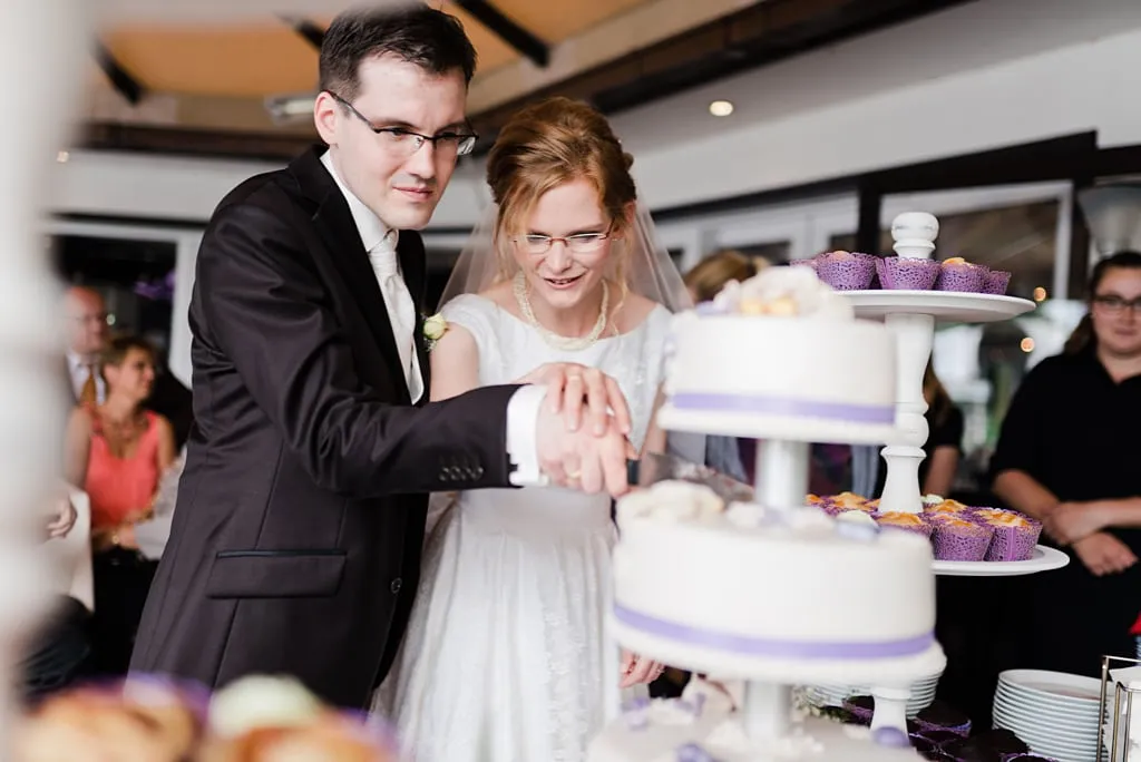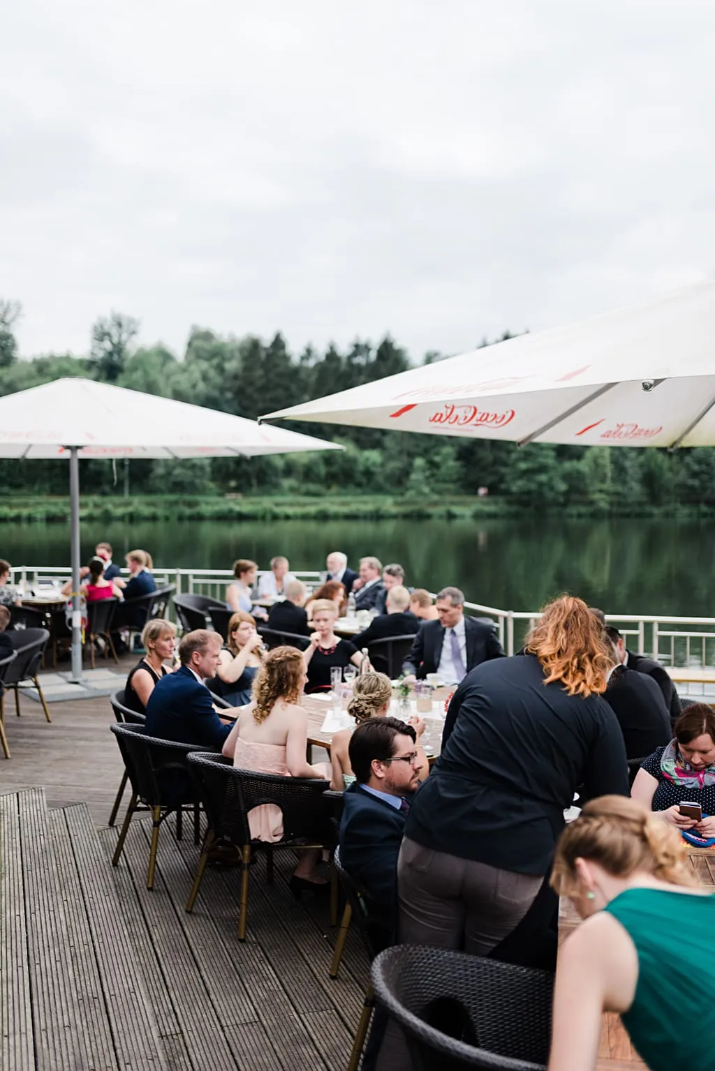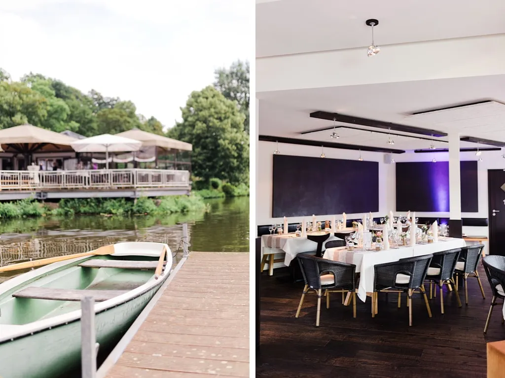 Bootshaus in Olpe, direkt am Biggesee. Wir sind immer noch begeistert von unserer Location! Das Bootshaus war mein erster Vorschlag, nachdem wir überlegt hatten, dass es doch ganz schön wäre, an einem See o.ä. zu feiern. Leider war es schon ausgebucht, bis auf einen Tag, an dem „unser“ Pfarrer nicht konnte. Wir machten uns also auf die Suche nach einer Alternative. Viele Wochen später kam ein unerwarteter Anruf: Im Bootshaus hatte jemand abgesagt und ein neuer Termin wurde frei. Wir haben gleich zugeschlagen und es nicht bereut.