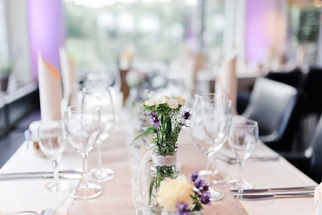 Einige Zeit vor der Hochzeit treffe ich die beiden im Bootshaus in Olpe, direkt an der Bigge. Hier soll auch die Hochzeitsfeier im Juli stattfinden. Heute aber, an diesem Tag im Mai sehen wir uns zum ersten Mal. Das Wetter ist herrlich. Die Strahlen der Abendsonne fallen durch die Wasser-Gläser auf den Tisch und werfen feine Schatten auf das Tischtuch. Vielleicht ein wenig schüchtern, aber doch bestimmt erzählen die Beiden mit strahlenden Augen von ihren Hochzeitsplänen, vom dem was bereits steht und von dem, was noch entschieden werden muss.