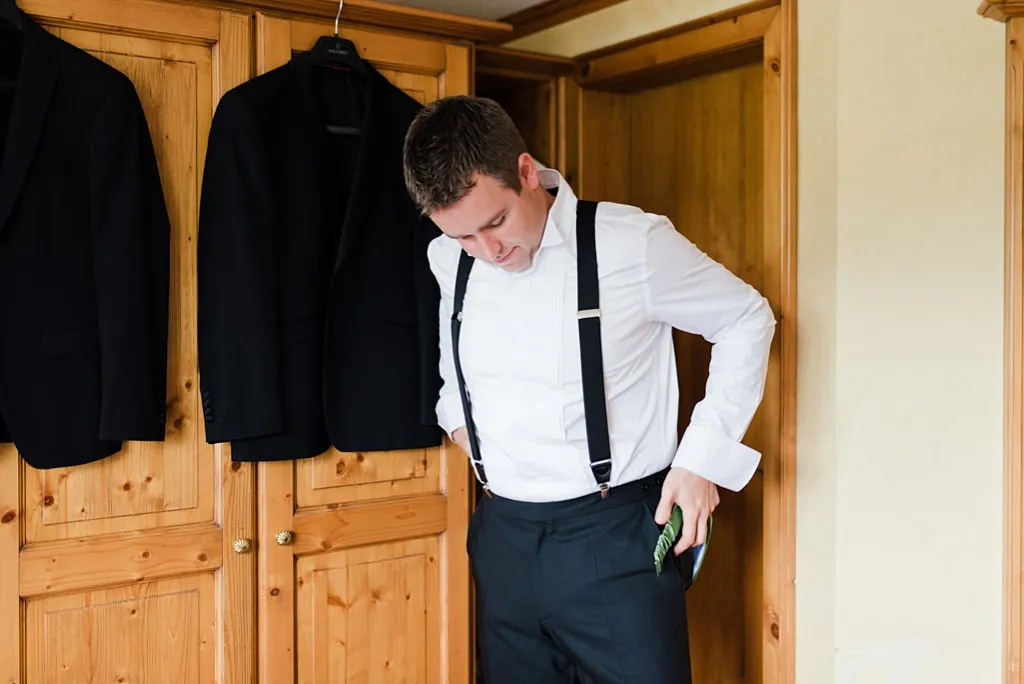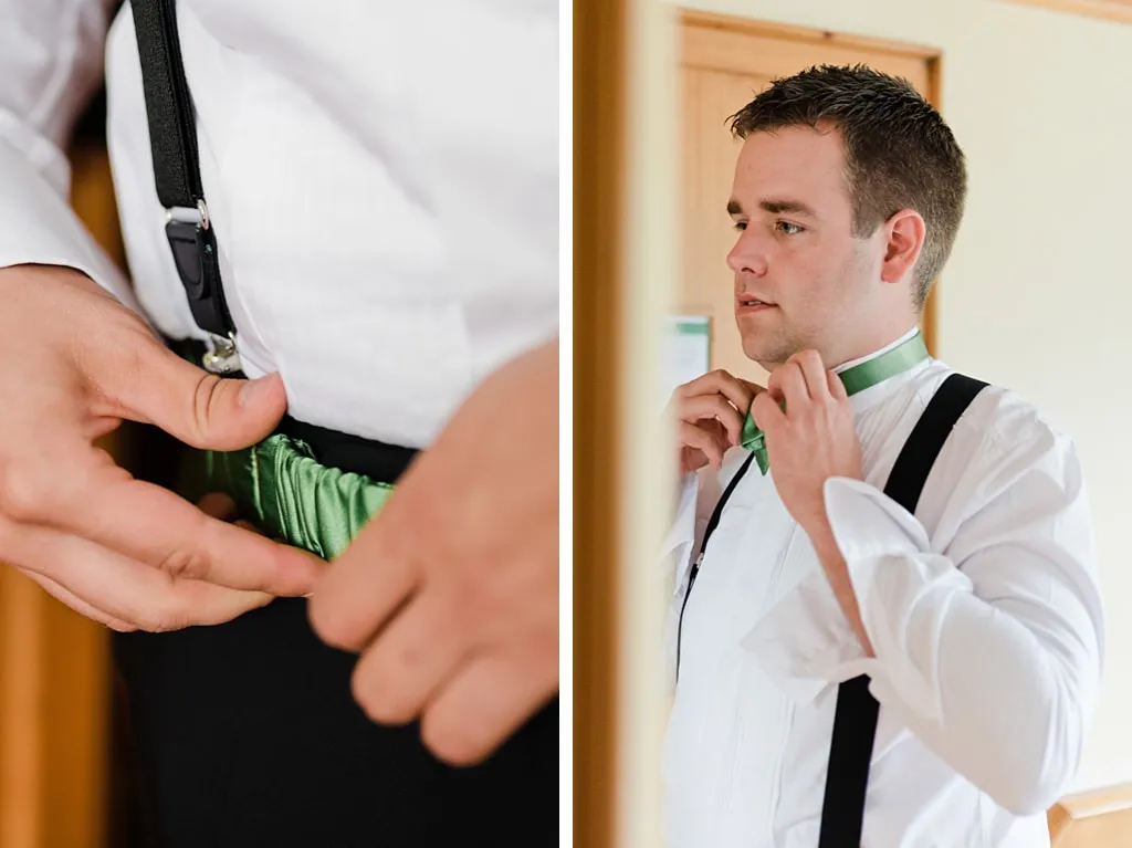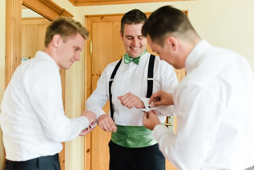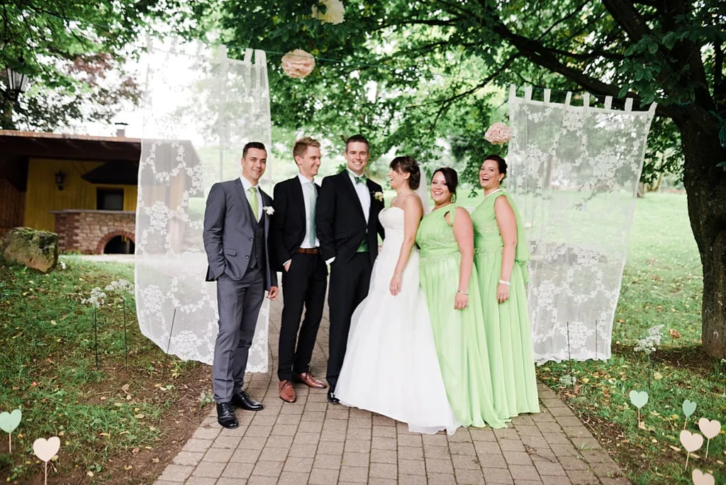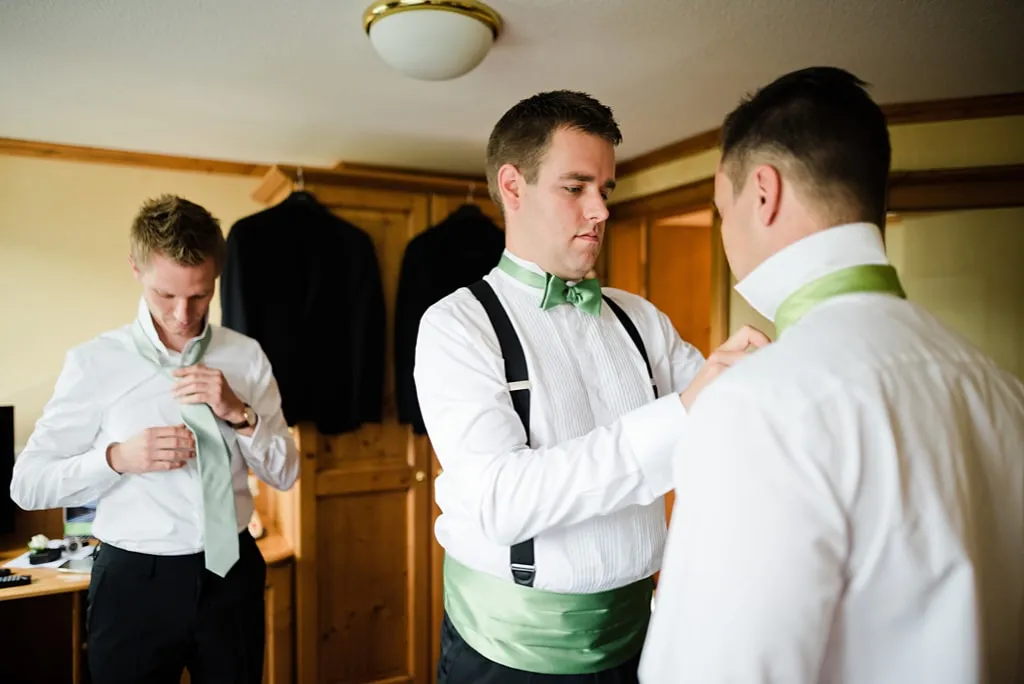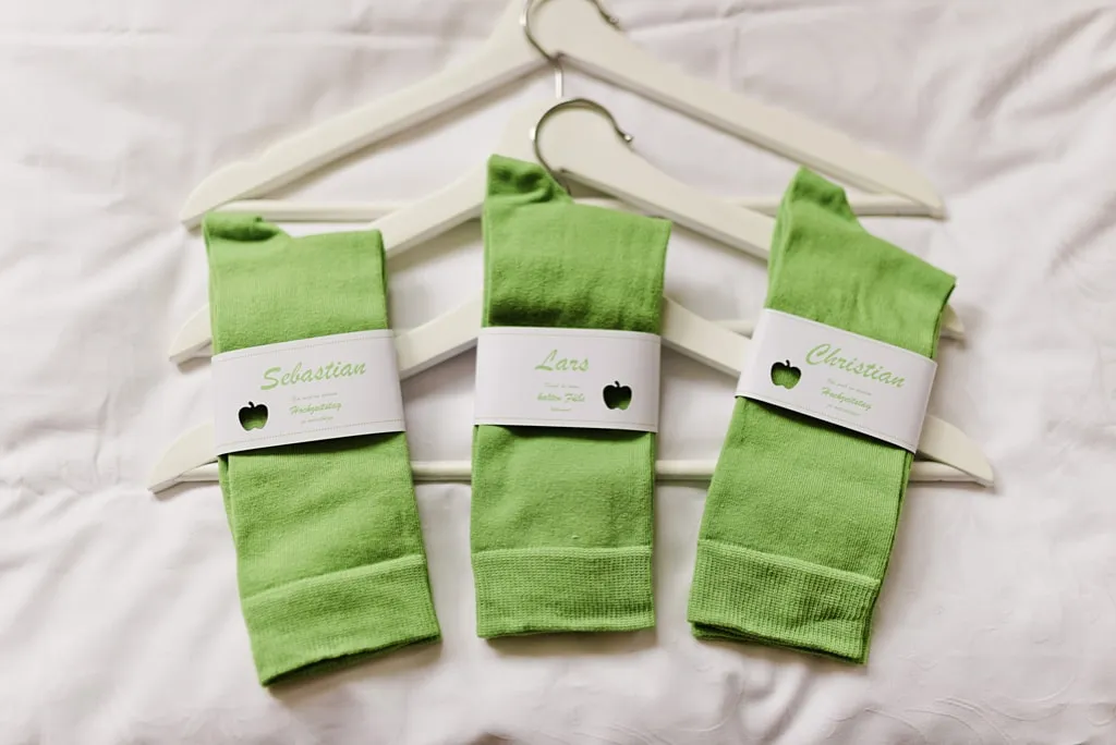 Lars trug an unserer Hochzeit einen schwarzen Smoking, mit apfelgrünem Kummerbund und dazu passender Fliege. Ich war tief gerührt ihn an unserem Hochzeitstag zu sehen und festzustellen, dass auch er „unsere Farbe“ in sein Outfit integriert hatte. Etwas ganz Besonderes!
