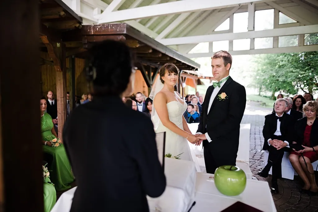 Wir hatten nach einer Location gesucht, die uns die Möglichkeit bot draußen in einer freien Trauung zu heiraten. Die aber auch einen „Plan B“ für schlechtes Wetter bot. Eine Location, bei dir wir alles unter einem Dach hatten und die genug Übernachtungsmöglichkeiten für unsere Gäste bot. Einige Gäste waren schon freitags angereist. Am Morgen nach der Hochzeit frühstückten wir noch Mal gemeinsam mit rund 50 Gästen und konnten unser Hochzeitswochenende perfekt ausklingen lassen.
