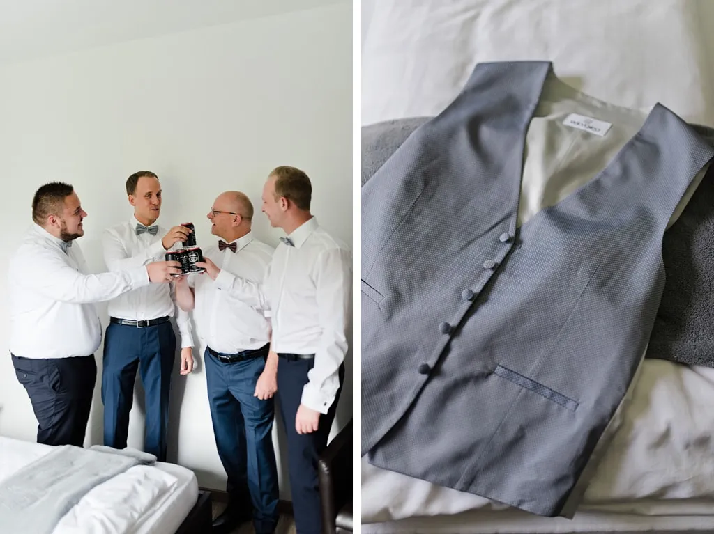 Den Anzug hat mein Mann bei Strodel & Jäger gekauft. Anfang des Jahres waren wir auf einer kleinen Hochzeitsmesse. In einem Flyer von diesem Ausstatter war ein Anzug abgebildet, der ihm unglaublich gefiel.