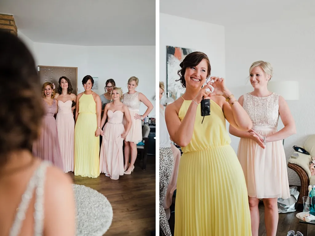 Es war dann an einem sonnigen Samstag im November, als ich mit genauso aufgeregten Frauen (meiner Mama, Schwester und vier weiteren Freundinnen) zu La Promessa gefahren bin. Wir bekamen eine Suite, in der schon Kleiderluft geschnuppert werden konnte, Getränke wurden gebracht und ich wurde gefragt, welche Wünsche ich hätte: ein Kleid mit Trägern, ein tiefer Rücken und wenig Glitzer.