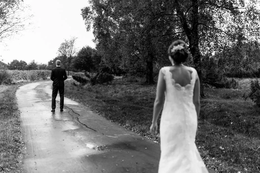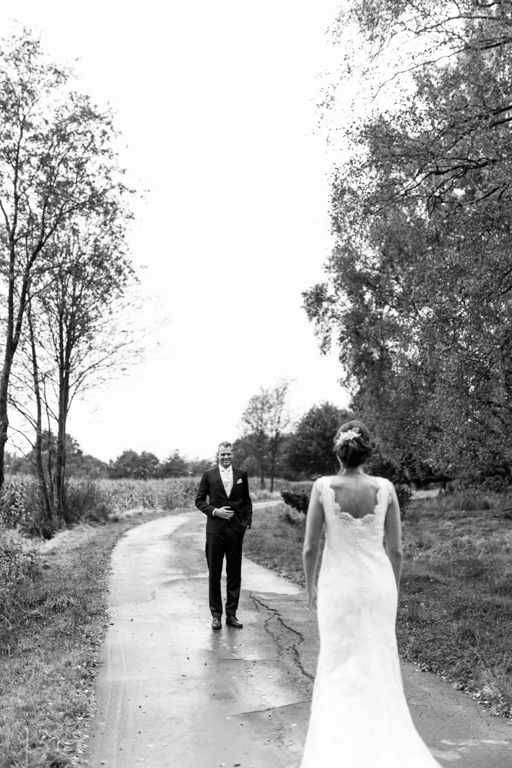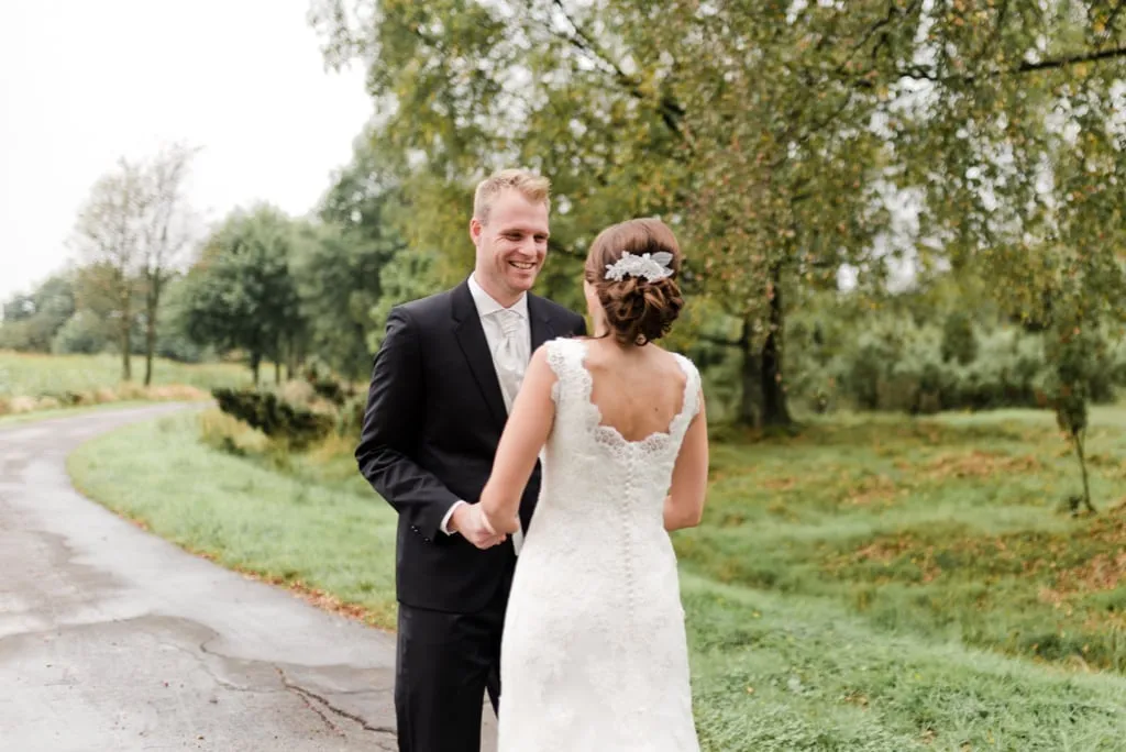 Als Hochzeitsfotografin ist es ein großes Geschenk, wenn Zwei so in diesen besonderen Augenblicken leben, dass sie mich gar nicht mehr wahrnehmen. Lächelnd laufen Deborah und Timo diese Straße im Sauerland entlang – mit Liebe im Herzen und voller Freude – ihrem großen Tag und ihrer ganz besonderen Scheunenhochzeit entgegen.