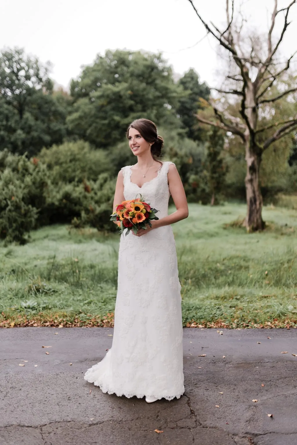 Mein Brautkleid ist aus Köln. Das Geschäft heißt Anna Moda. Ich war einen Tag mit meiner Trauzeugin, meiner zukünftigen Schwägerin und meiner Mama unterwegs und hatte Termine in zwei Geschäften. Das Kleid war tatsächlich das letzte, dass ich an dem Tag anprobiert habe. Ich war schon kurz vor dem Verzweifeln und habe mich unverrichteter Dinge nach Hause fahren sehen. Und dann kam es doch noch… als ich das Kleid anhatte meinte die Verkäuferin „jetzt gehen Sie mal auf den Spiegel zu und tun so als wären Sie schon in der Kirche“… als dabei die Augen nass wurden, wusste ich, das ich mein Kleid gefunden hatte.